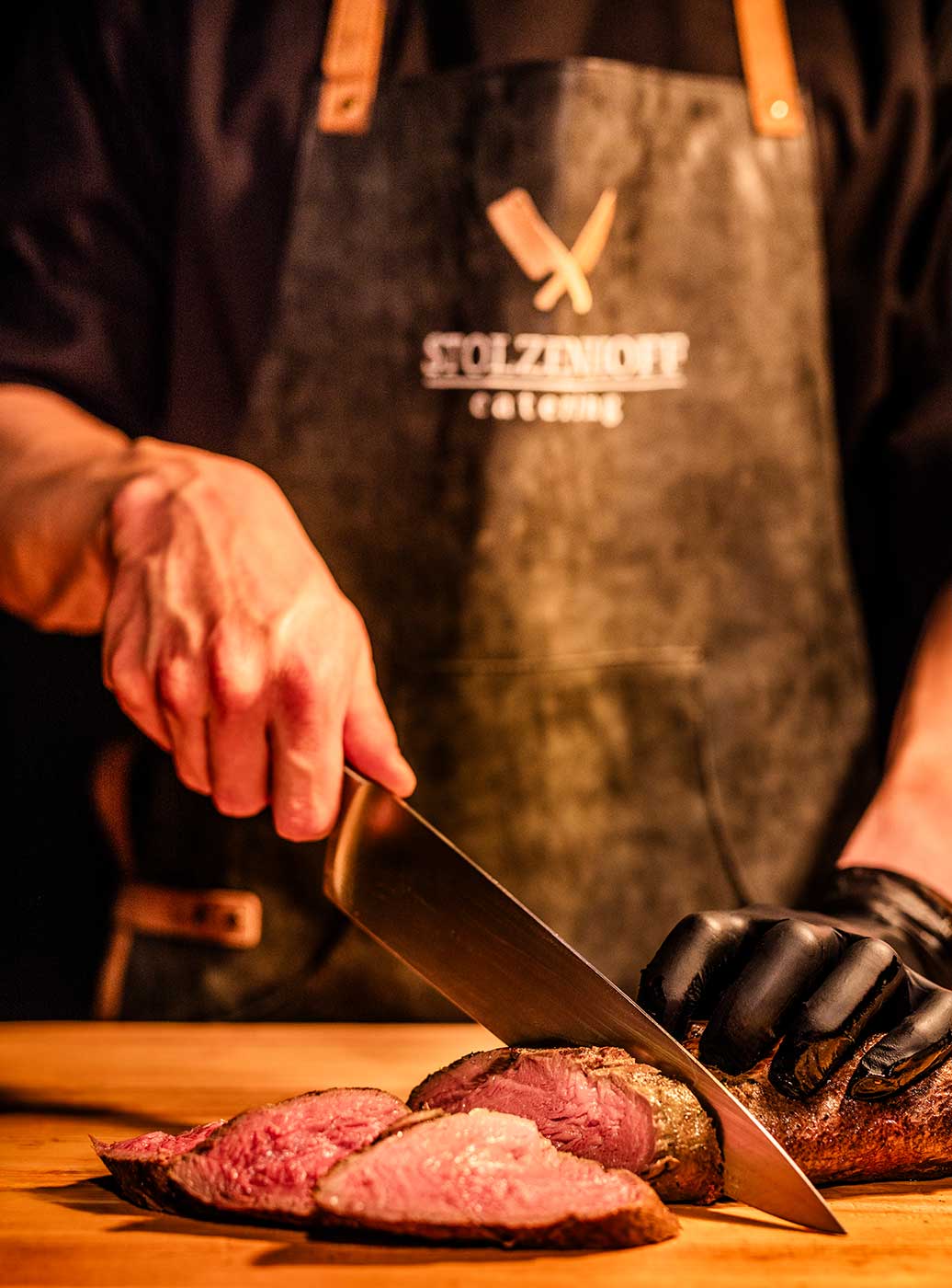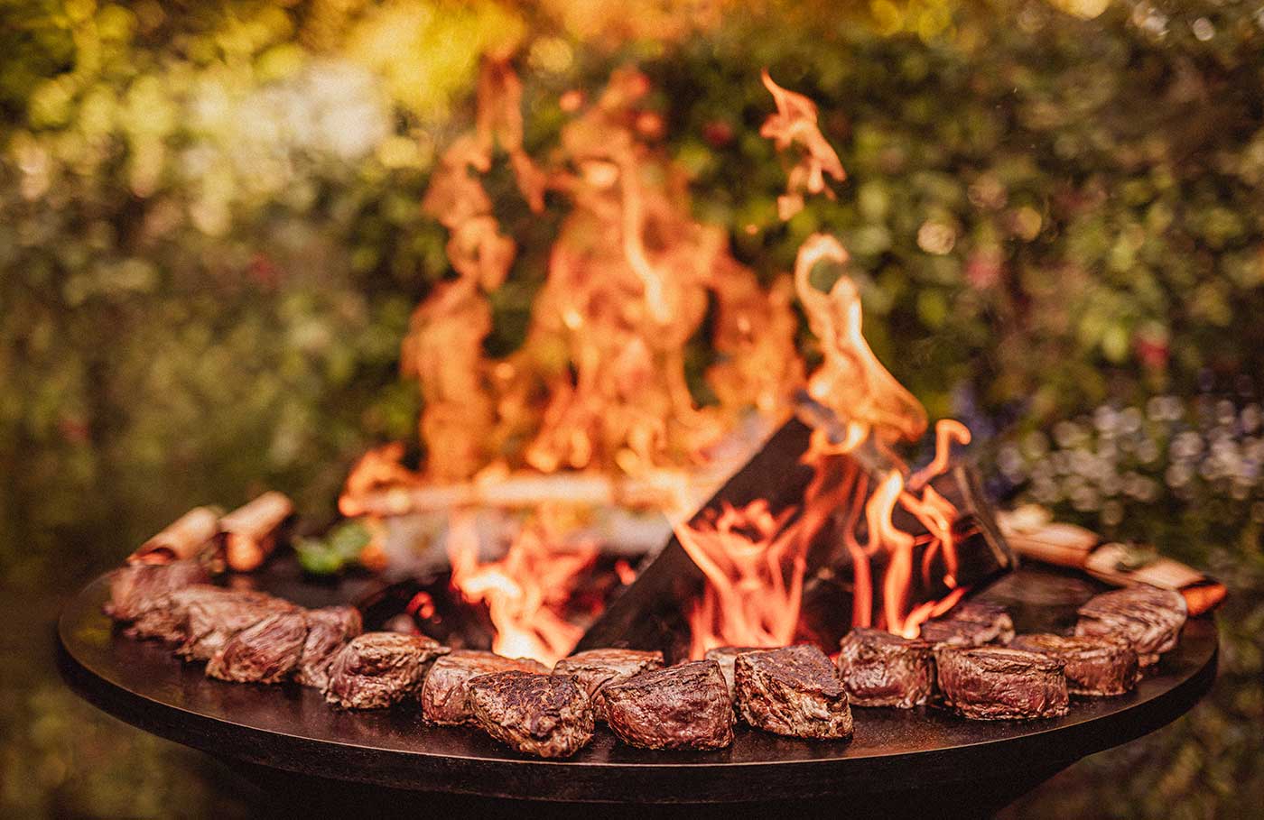 Für wahre BBQ-Gourmets bieten wir Dry Aged gereiftes Rindfleisch, das mit seinem intensiven Aroma und der perfekten Zartheit eine Delikatesse für sich ist. Aber das ist noch nicht alles: Lassen Sie sich von unserem Ochsen am Spieß verzaubern – ein echtes Highlight für jedes große Event, bei dem das zarte Fleisch vor der Feuerwand langsam vor sich hin brutzelt und dabei seinen einzigartigen Geschmack entfaltet. Für den ultimativen Show-Effekt sorgt unser Ring of Fire: Gegrillt wird auf dem Stahlring, der Temperaturen zwischen 180 und 300 Grad erreichen kann. So lässt sich das Grillgut scharf anbraten und danach bei niedrigerer Temperatur schonend garen.