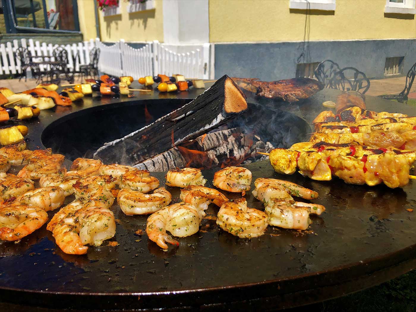 Von klassischen Grillspezialitäten wie saftigen Steaks und würzigen Burgern bis hin zu diesen außergewöhnlichen Highlights – wir bieten Ihnen eine vielseitige Auswahl, die jedes BBQ zu einem unvergesslichen Event macht. Ob für ein entspanntes Sommerfest, ein Firmen-Event oder eine private Feier – ein BBQ von uns sorgt für eine lockere, gesellige Atmosphäre und lässt Ihre Veranstaltung kulinarisch aufblühen.