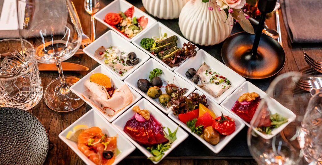 Vom Rohprodukt zum Highlight – die Verarbeitung der Lebensmittel ist bei Stolzenhoff Handwerkssache aus Leidenschaft. In der Feinkostküche im Herzstück des Unternehmens werden alle kalten Komponenten für Menus, Buffets und z. B. Fingerfood täglich frisch zubereitet und hergestellt.