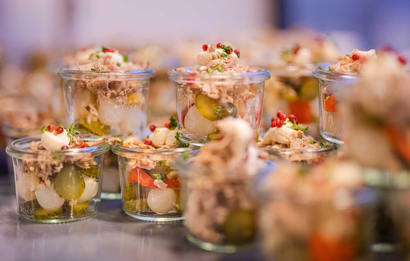 Ob lockere Feier, stilvolle Gala oder Business-Event – Fingerfood ist die ideale Wahl, um Ihren Gästen einen kulinarischen Genuss ohne Komplikationen zu bieten. Unsere kreativen und köstlichen Häppchen sind nicht nur ein Gaumenschmaus, sondern auch ein optisches Highlight. Klein, aber fein – mit sorgfältig ausgewählten Zutaten und liebevoll zubereitet, bieten unsere Fingerfood-Kreationen eine Vielzahl an Geschmacksrichtungen, die perfekt zu jeder Gelegenheit passen.