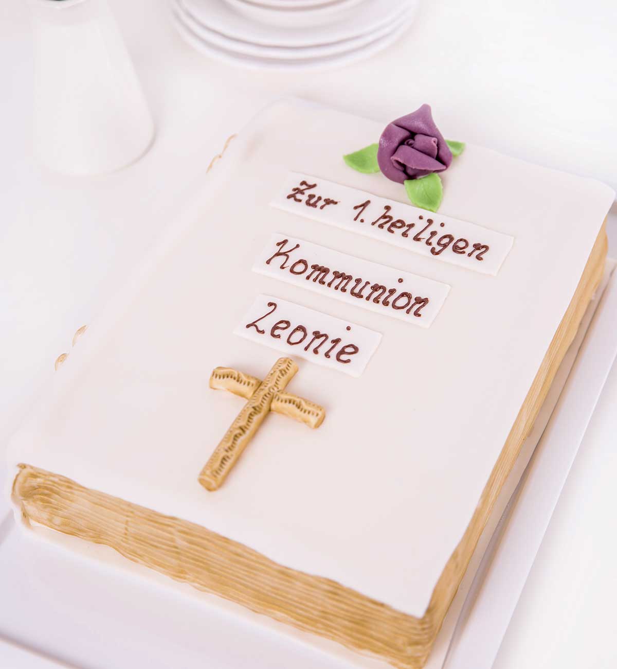 Mit Hilfe unserer Rondo-Ausrollmaschinen für Blütenpaste, Fondant- & Teigmasse sowie unserer Etagenöfen der Firma Heuft und Miwe als auch diversen Anschlagmaschinen produziert unser 7-köpfiges Team in der Hochsaison rund 30 Hochzeitstorten, 100 klassische Torten, 15.000 Stücke Kuchen sowie knapp 20.000 Teilchen Fingerfood in der Woche.