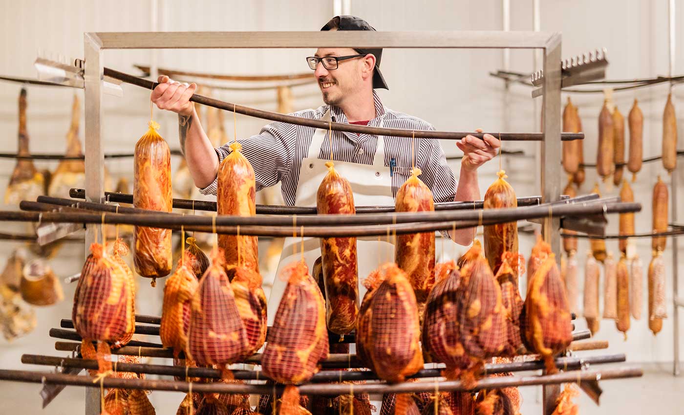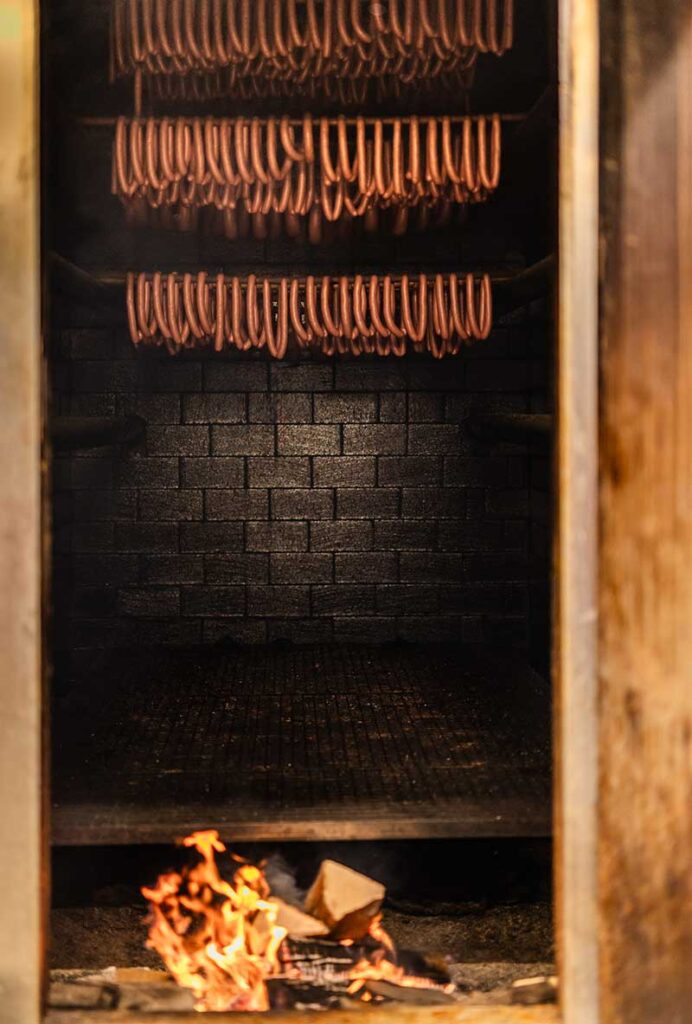 In drei Buchenholz-Räucherkammern werden Dauerwurst und Salami, Schwarzwälder Schinken und Südtiroler Bauernspeck veredelt. Größere Fleischstücke, wie etwa Schinken oder Trockenfleisch werden in einem 100 qm Klimaraum gepökelt und im Anschluss „durchgebrannt“, also unter kontrollierten Bedingungen getrocknet und gereift. Als Spezialität des Hauses gilt das selbstgereifte dry-aged Fleisch.