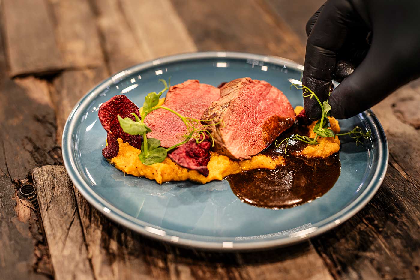 Als große Spezialität des Hauses gilt das selbstgereifte dry-aged Fleisch, das durch den traditionellen Reifeprozess eine nussige und buttrige Note erhält.