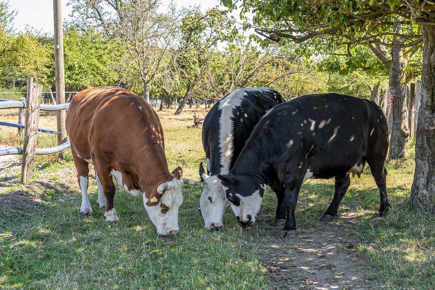 Das Rindfleisch stammt von den Landwirten Baukloh (Dortmund), Schulze Bockholt (Lüdinghausen) und Wiesmann aus Selm. Hier werden die Tiere stressfrei in Kleingruppen gehalten, haben frische Luft, Auslauf und werden mit Naturprodukten gefüttert.
